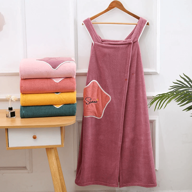 Redefine the comfort of lounging in your home with Drystox™, a unique bathrobe for women that can be worn and buttoned up like a dress!!