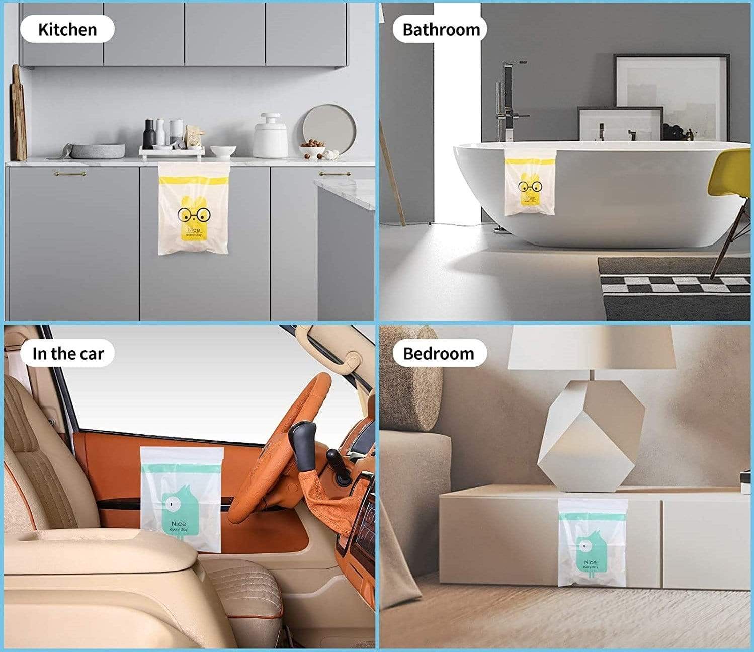 Easy to Use: Just remove the white strip to reveal the adhesive beneath it. Now stick the bag anywhere, the strong adhesive will make sure it stays on without falling off.