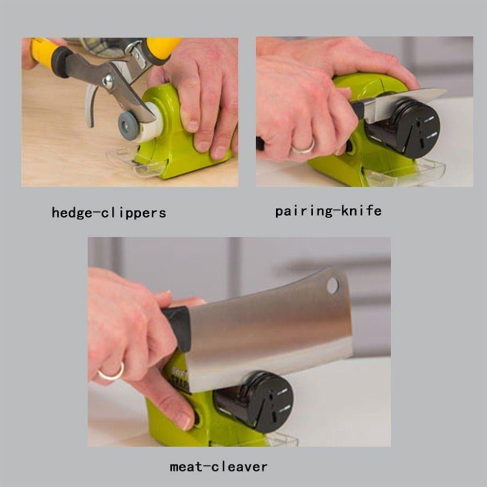 It is a motorized knife sharpener that restores the razor edge of blades in seconds.