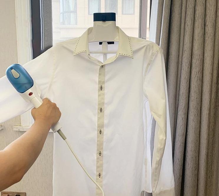 This handheld garment steam iron removes wrinkles, odors and straightens out creases while the clothes are held up on a hanger.