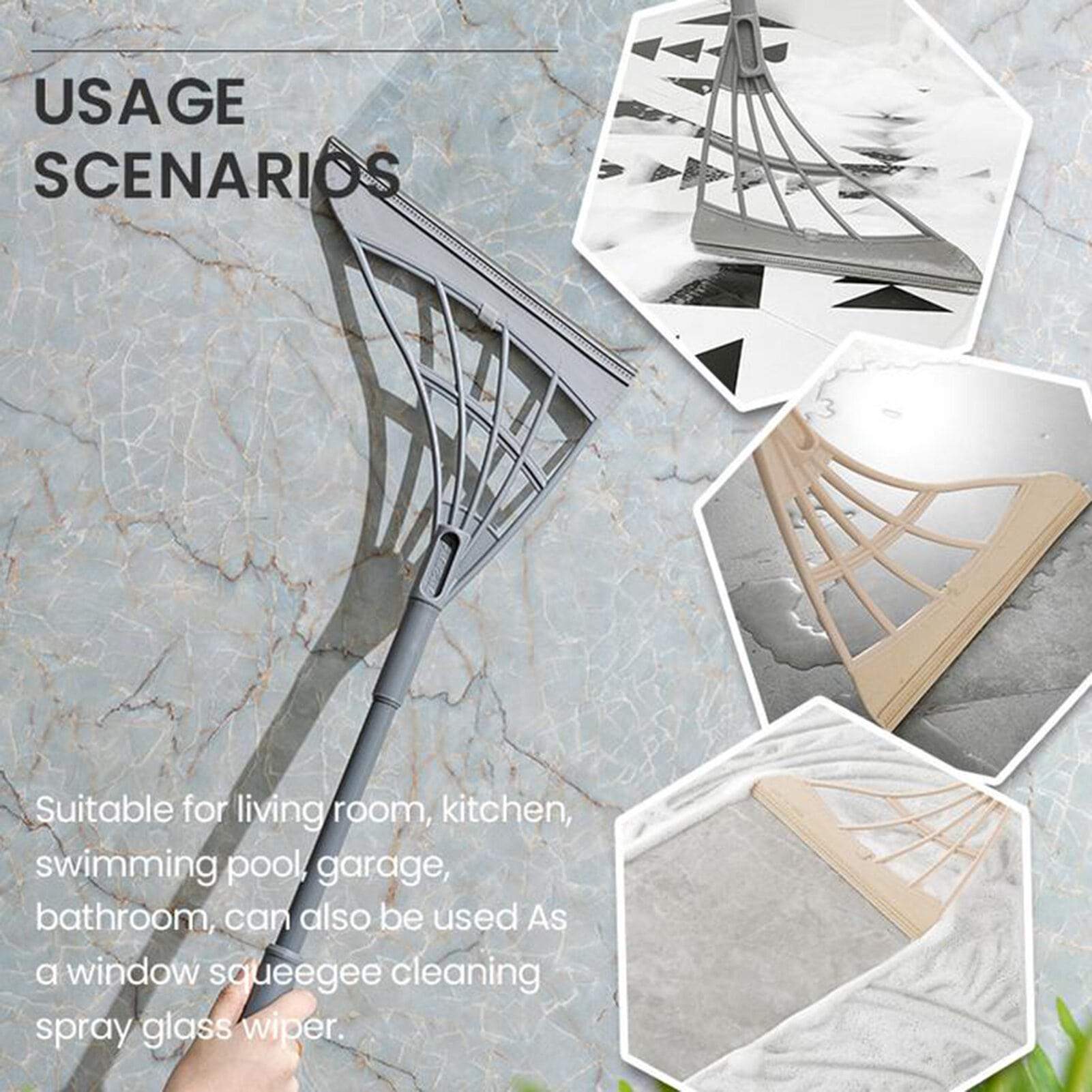 Kleanezy™ can scrape clean dirt, dust, hair, as well as wet trash, water, spills, and more. No need to scrub and sweep separately. Just a single swipe and the floor is clean and dry as new. Works on all kinds of surfaces like concrete, wood, tile, marble, etc.