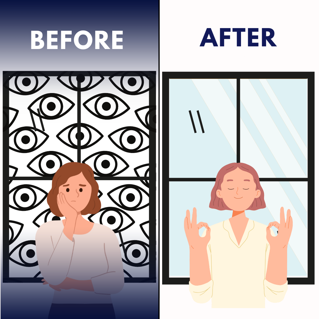 Note: One-way visibility only works when the outside is brighter than inside. For night-time privacy, consider adding curtains or blinds.