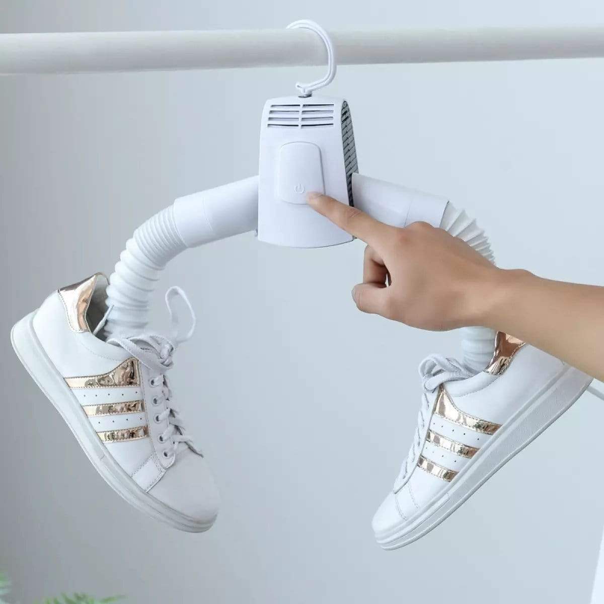 This clothes drying hanger comes with tubes that will dry wet shoes and other footwear too.
