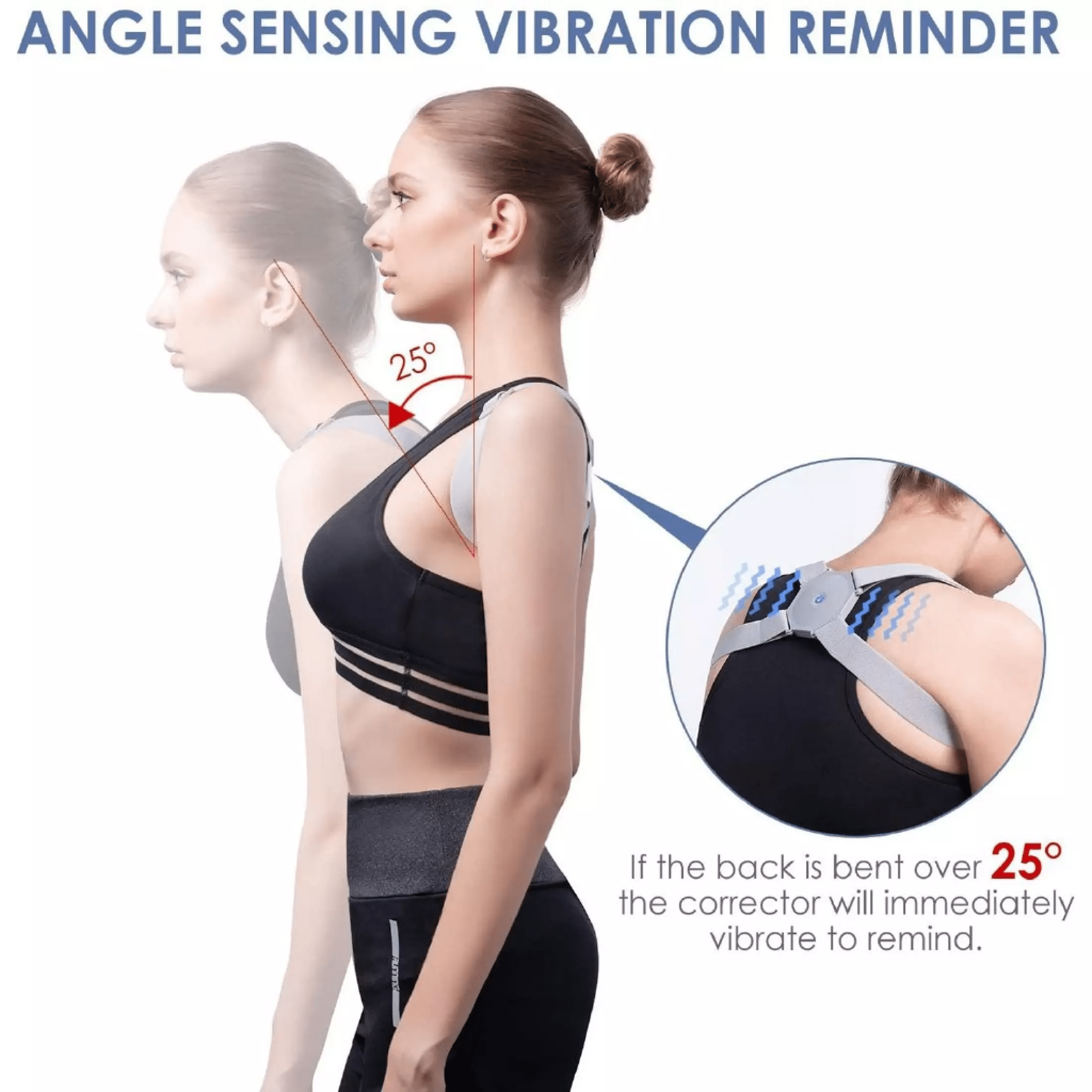 Equipped with a smart sensor, Posturyt™ Pro vibrates and alerts if the slouching reaches 25°. It helps you build correct posture habits to naturally straighten your spine, shoulders, and back.