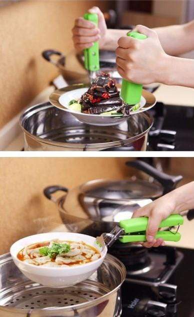 Pickeze™, bowl holder clamp for carrying hot pots, plates, glasses, bowls, mugs, dishes, and more.
